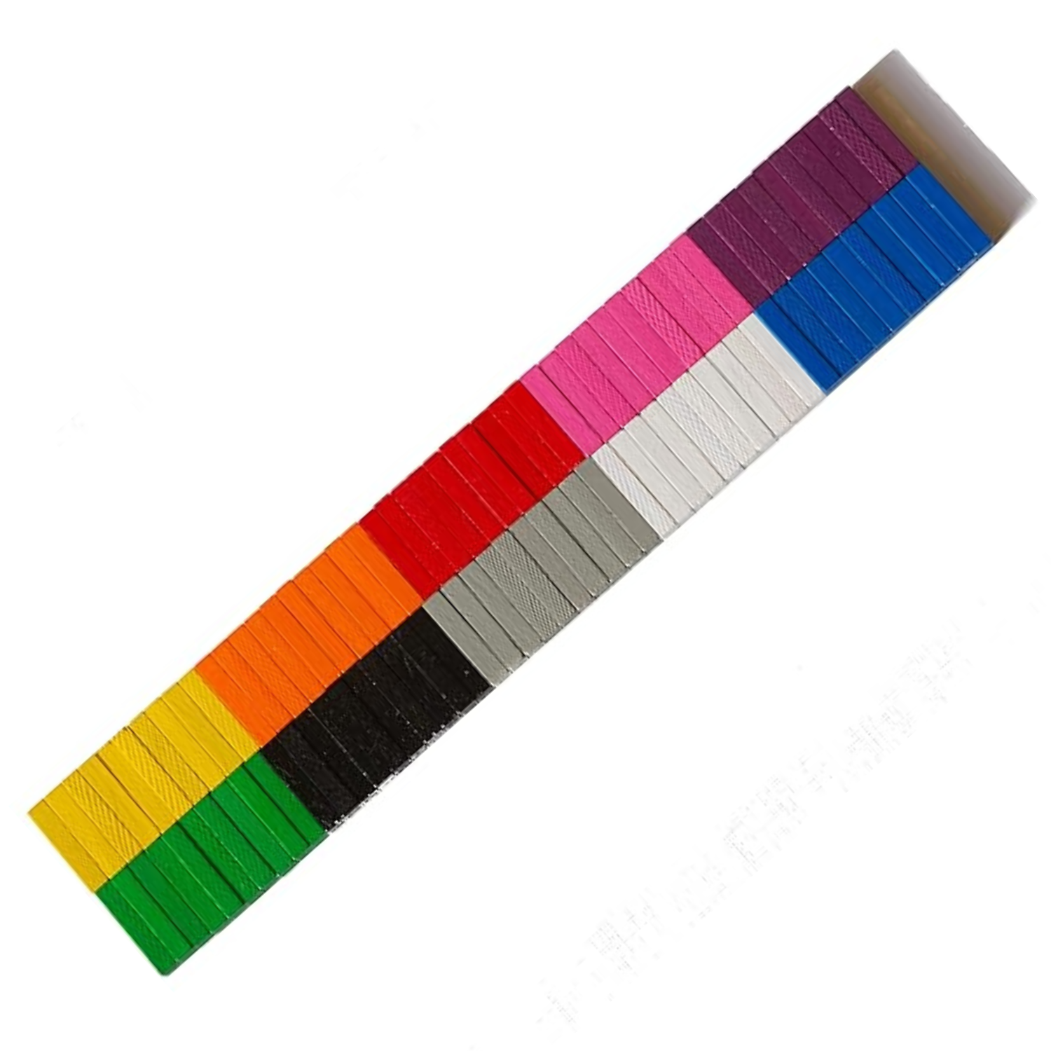 Spieltz kurze Vierkantstäbchen (Vierkant-Holzstäbchen) aus Holz, geschliffen und lackiert, made in Germany. Premium Qualität, produziert nach den Richtlinien der europäischen Spielzeugsicherheit. 10 Farben: Gelb, Orange, Rot, Rosa, Lila, Blau, Grün, Grau, Schwarz, Weiß. Zählstäbchen für individuelle Brettspiele, Rechenstäbchen für Schule + Kindergarten, Montessori-Lernmaterial oder Material zum Basteln, z.B. für Deko Artikel oder Spielzeug. Maße: Größe der Stäbchen 25 x 5 x 5 mm. Menge: 100 Stück (10 x 10 Farben = von jeder Farbe 10 Stäbchen). Die Stäbchen sind klein und platzsparend und lassen sich gut verstauen.. Hergestellt in Deutschland / Made in Germany. Produziert nach den strengen Richtlinien der europäischen Sicherheitsnorm EN-71 (Sicherheit von Spielzeug), entspricht zudem der Richtlinie 2005/84/EG (Phthalate). Material: Holz aus nachhaltiger Forstwirtschaft. CE für Spielzeug.